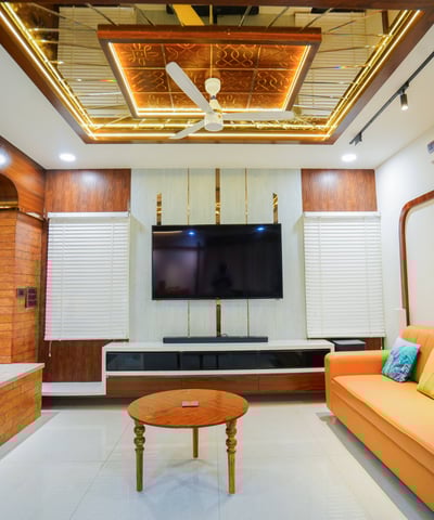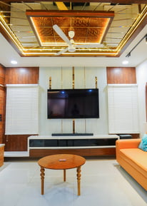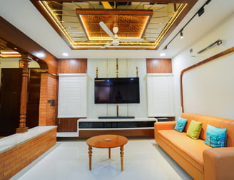 At Sthapati Design Studio, we blend traditional and modern designs, specializing in quick interior transformations with false ceilings, woodwork, and wall decor.